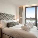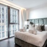 Located in an elegant Manhattan loft-style development, this two-bedroom, two- bathroom interior designed contemporary apartment offers far-reaching views from private balconies and luxurious amenities. It is situated in the heart of Nine Elms, London’s newest and existing riverside district. Thornes House is close to the American Embassy and Battersea Power Station, yet you can be in central London in minutes.